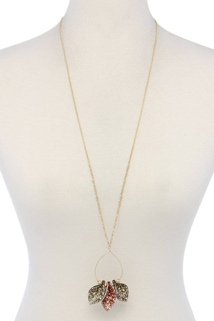 GLITTER TEARDROP SHAPE PENDANT NECKLACE